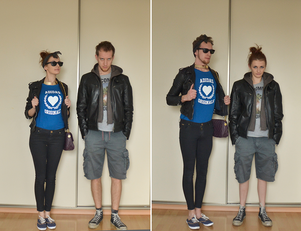 Czemu o tym piszę? Miło zaskoczyła mnie ostatnio firma Adidas i to ona spowodowała, że zastanowiłem się nad tym tematem. Magda opublikowała post zatytułowany „na opak”. We wpisie pojawiła się niżej zamieszczona fotka, w której ja ubieram ciuchy Magdy, a Magda moje.
